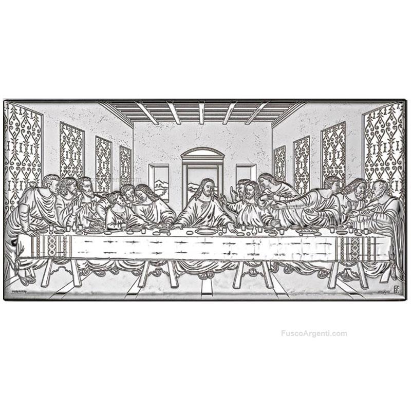 Icona ultima cena in argento laminato con dettagli sabbiati, retro legno. icone sacre cm 15x8 - sabbiato Marca: Atelier . Cod. prodotto: ae0287/1s