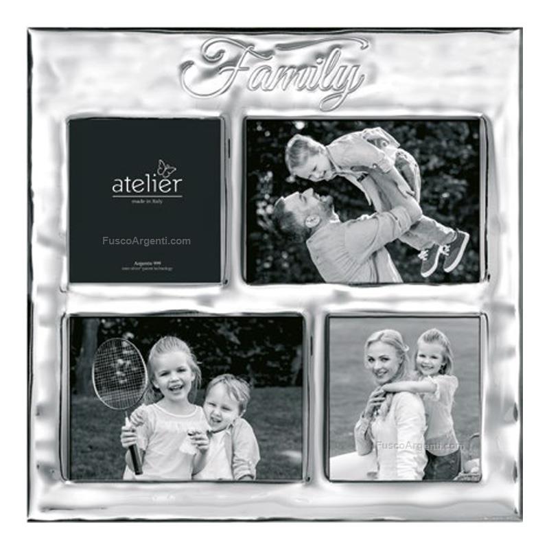 Portafoto multiplo in argento laminato "family", retro legno. Generiche cornici cm 30x30 Marca: Atelier . Cod. prodotto: ae1505/2