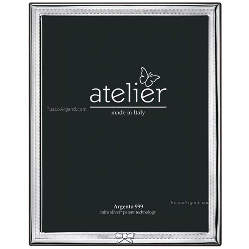 Portafoto in argento laminato "fiocco", retro legno. Generiche cornici cm 10x15 Marca: Atelier . Cod. prodotto: ae10001/10