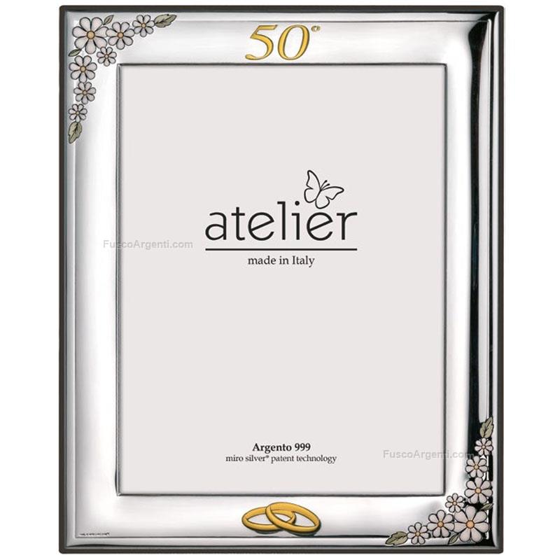 Portafoto in argento laminato "margherite" anniversario, retro legno. Ricorrenze cornici anniversario e matrimonio cm 13x18 - 50° Marca: Atelier . Cod. prodotto: ae11090/13