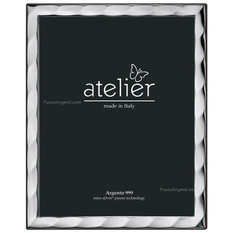 Portafoto in argento laminato "onde", retro legno. Generiche cornici cm 10x15 Marca: Atelier . Cod. prodotto: ae10006/10