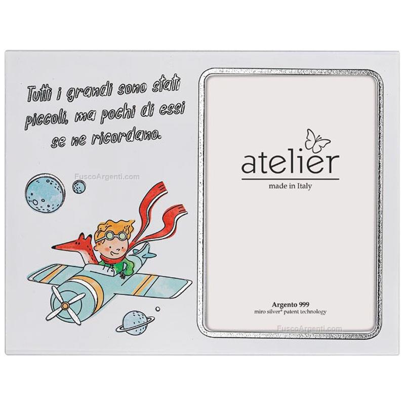 Portafoto in legno "piccolo principe" con foglia argento. Generiche cornici cm 10x15 Marca: Atelier . Cod. prodotto: ae8006/3