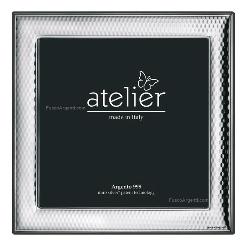 Portafoto quadrato in argento laminato martellato, retro legno. Generiche cornici cm 6x6 Marca: Atelier . Cod. prodotto: ae11076/6q