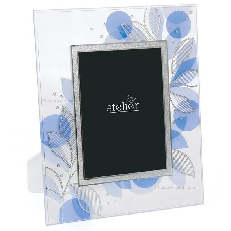 Portafoto in vetro con foglia argento "leaf", retro legno bianco. Generiche cornici articoli in vetro cm 13x18 - blu Marca: Atelier . Cod. prodotto: ae1399/13b