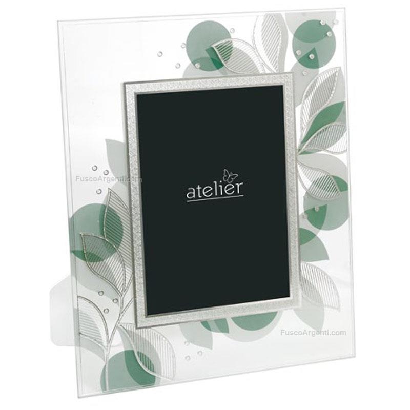 Portafoto in vetro con foglia argento "leaf", retro legno bianco. Generiche cornici articoli in vetro cm 13x18 - verde Marca: Atelier . Cod. prodotto: ae1399/13g