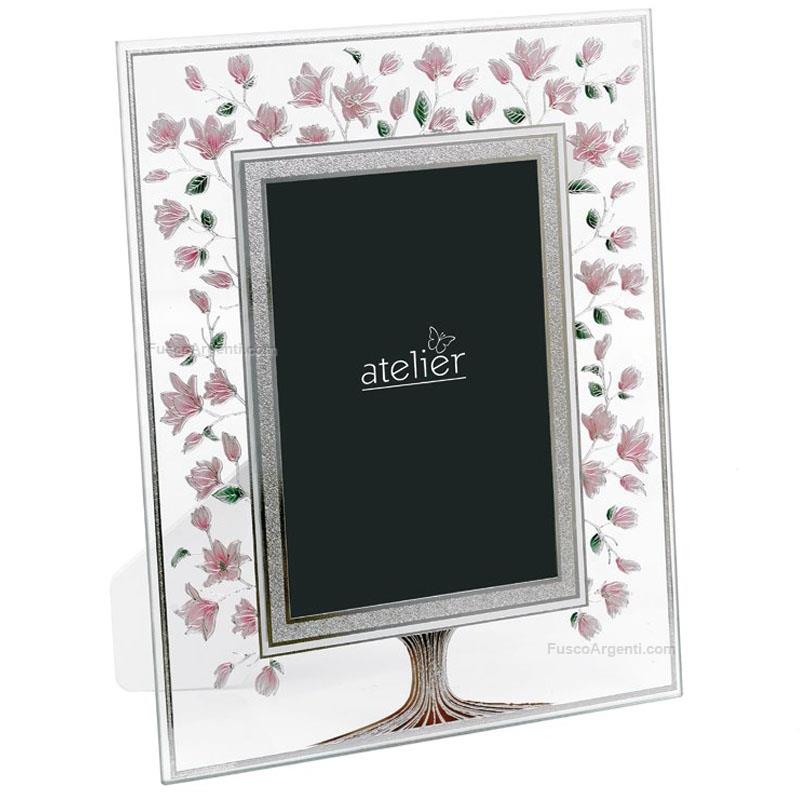 Portafoto in vetro con foglia argento "magnolia", retro legno bianco. Generiche cornici articoli in vetro cm 9x13 Marca: Atelier . Cod. prodotto: ae13003/9