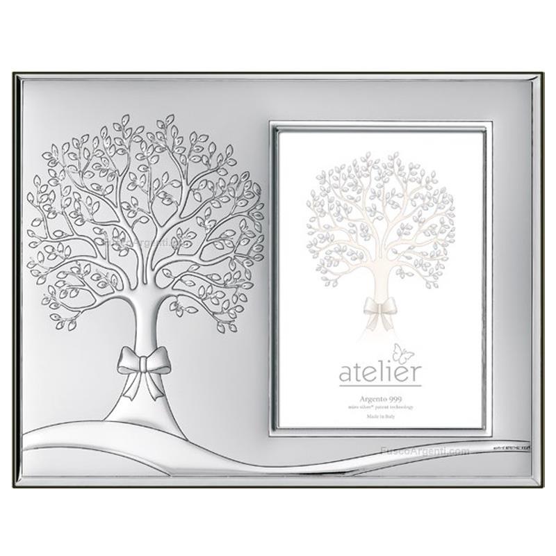 Porta foto decentrato in argento laminato "albero della vita", retro legno. Generiche cornici cm 10x15 Marca: Atelier . Cod. prodotto: ae1104n/10