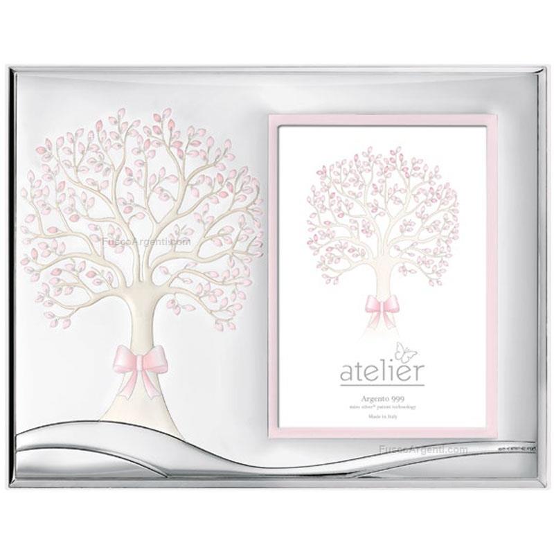 Portafoto in argento laminato "albero della vita", retro legno bianco. Bimbo cornici prima infanzia cm 9x13 - rosa Marca: Atelier . Cod. prodotto: co3850/3ra