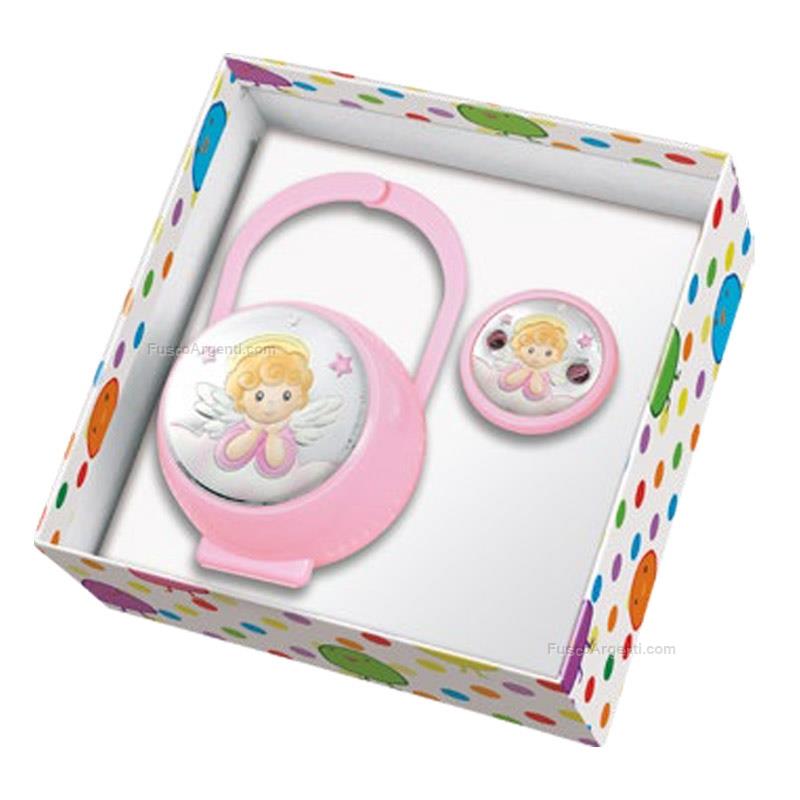 Scatola e pinza porta ciuccio con placca in argento laminato "angelo". Accessori ciuccio prima infanzia 2 pz - rosa Marca: Atelier . Cod. prodotto: ae3876/ra