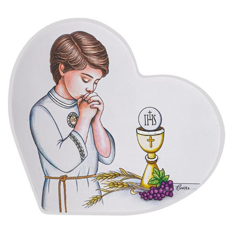 Wood heart shape panel holy communion with silver foil details. Special days sacred items holy communion cm 12x11 - silver foil Brand: Atelier . Cod. prodotto: cu110/1o
