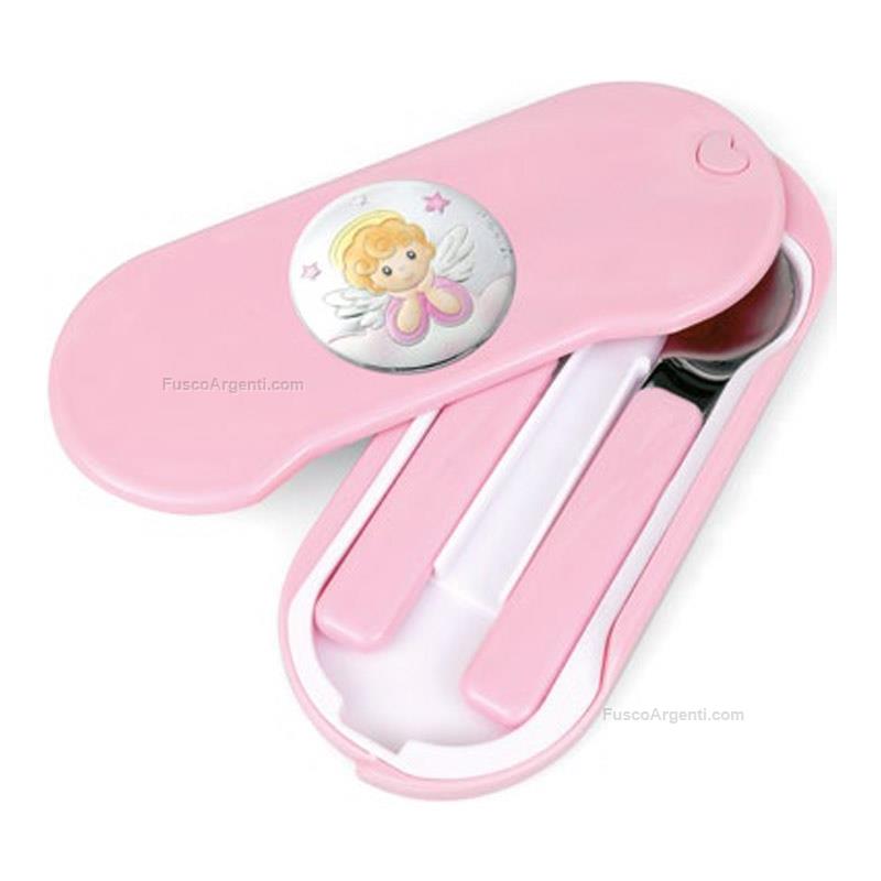 Baby food set with silver plate "angel". Baby food babyhood cm 18 - pink Brand: Atelier . Cod. prodotto: ae3876p/ra