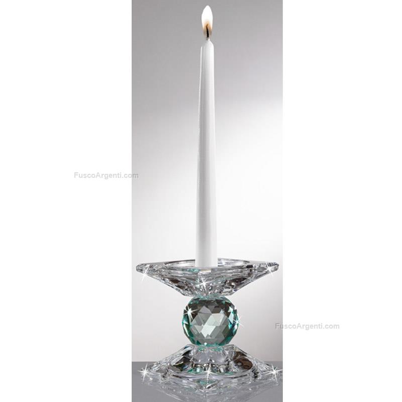 Crystal candleholder with colored sphere. Candleholders crystalware favors cm 9x9 h 10 - aqua green Brand: Ranoldi . Cod. prodotto: racbb472