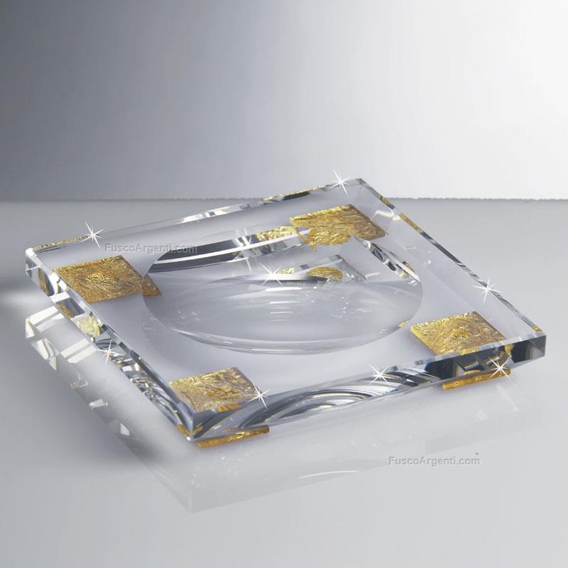 Crystal coin tray with golden foil details. Coin trays crystalware centerpieces & boxes cm 16x16 h 2 Brand: Ranoldi . Cod. prodotto: ramm180/oro