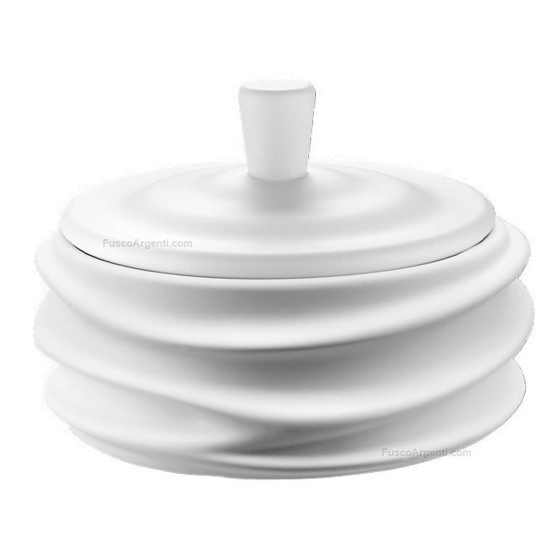 White resin case with lid "waves". Centerpieces and boxes silver coated items diam cm 14 h 10 - white Brand: Valenti & co. . Cod. prodotto: vlr18461/bi