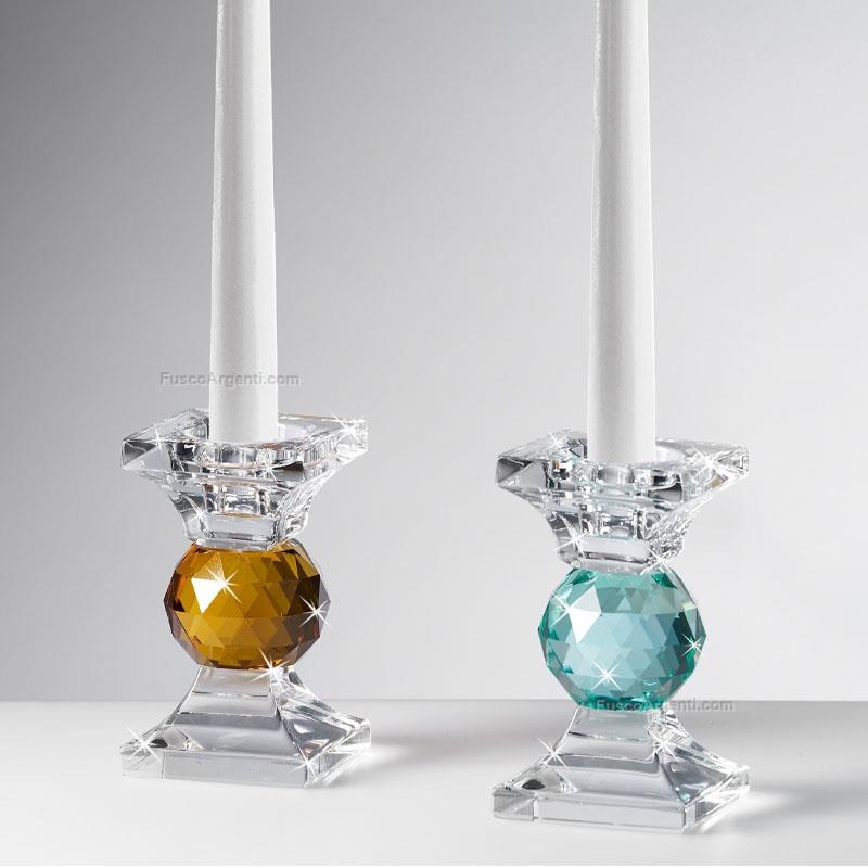 Candeliere in cristallo colorato. Candelieri cristalleria bomboniere cm 6x6x11 - verde acqua Marca: Ranoldi . Cod. prodotto: racbb505