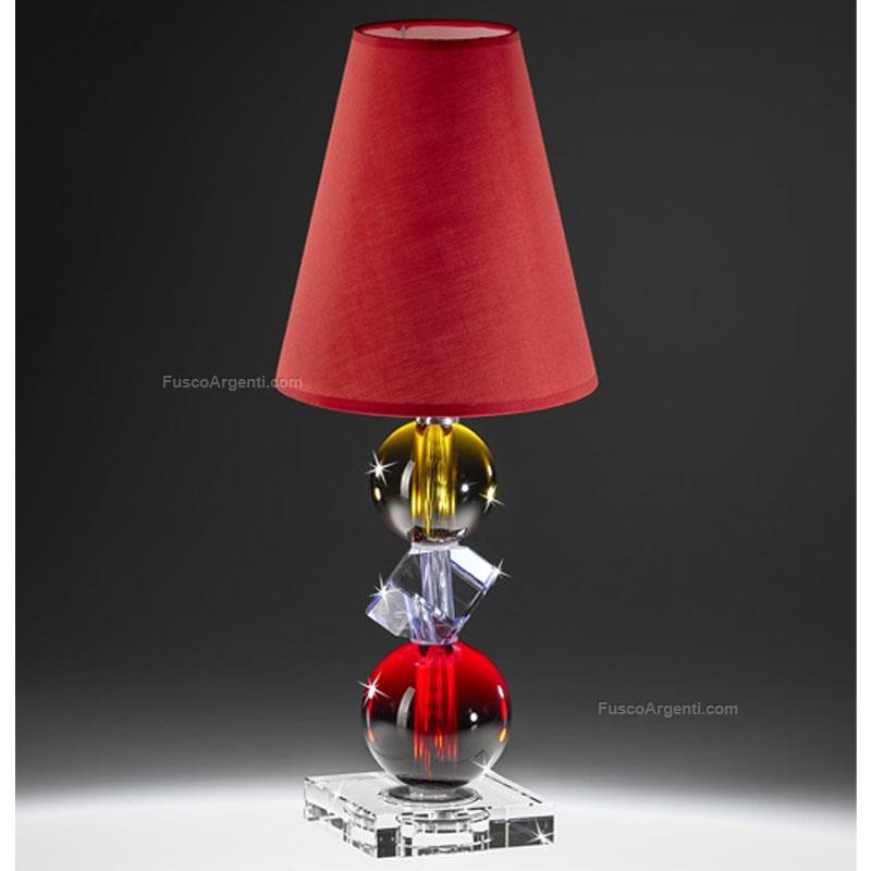Lampada da tavolo in cristallo colorato con paralume in tessuto rosso. Lampade cristalleria cm 18x18 h 45 - rosso viola e ambra Marca: Ranoldi . Cod. prodotto: ralc302