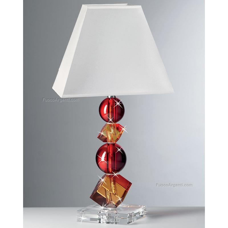 Lampada da tavolo in cristallo colorato con paralume bianco. Lampade cristalleria cm 27 h 53 Marca: Ranoldi . Cod. prodotto: ralc394