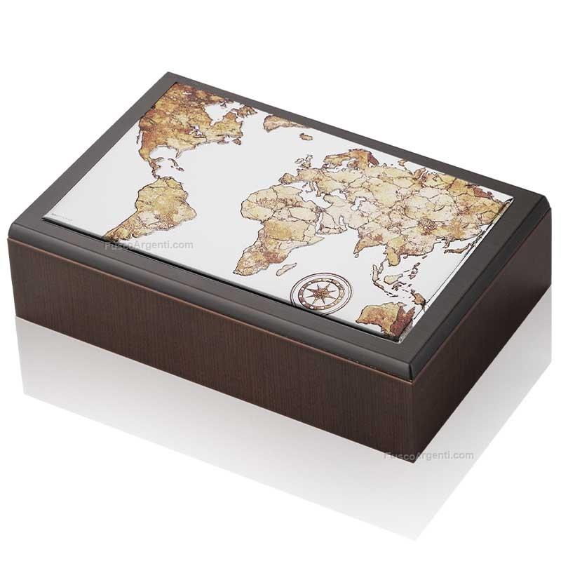 Porta gioie in legno noce e argento laminato "minimal". cofanetti cm 20,5x12,5 h 6 Marca: Thilia argenti . Cod. prodotto: cm454639