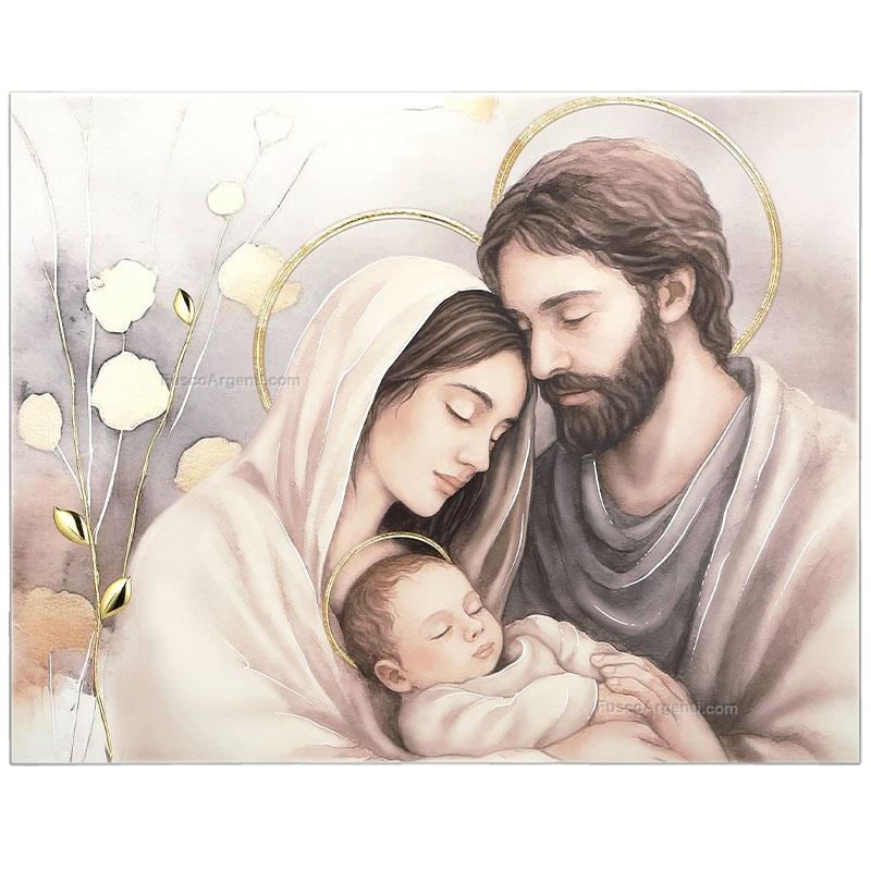 Icona in legno sacra famiglia con foglie in argento laminato dorato. icone sacre cm 61x48 Marca: Thilia argenti . Cod. prodotto: cm454605