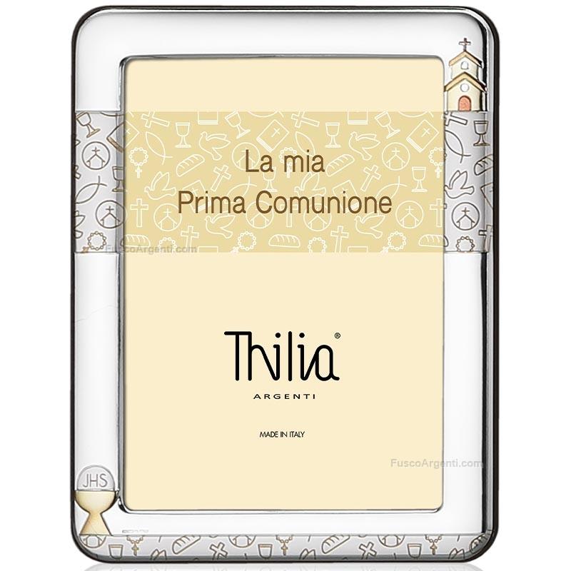 Portafoto in argento laminato comunione, retro legno. Ricorrenze cornici comunione cm 13x18 Marca: Thilia argenti . Cod. prodotto: cm454598