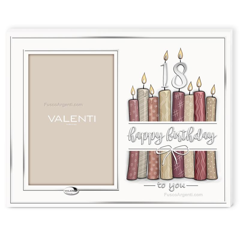 Cornice in legno e foglia argento "18° compleanno". Ricorrenze cornici cm 19,5x14 - int 8x10 Marca: Valenti & co. . Cod. prodotto: vlls1200/2x