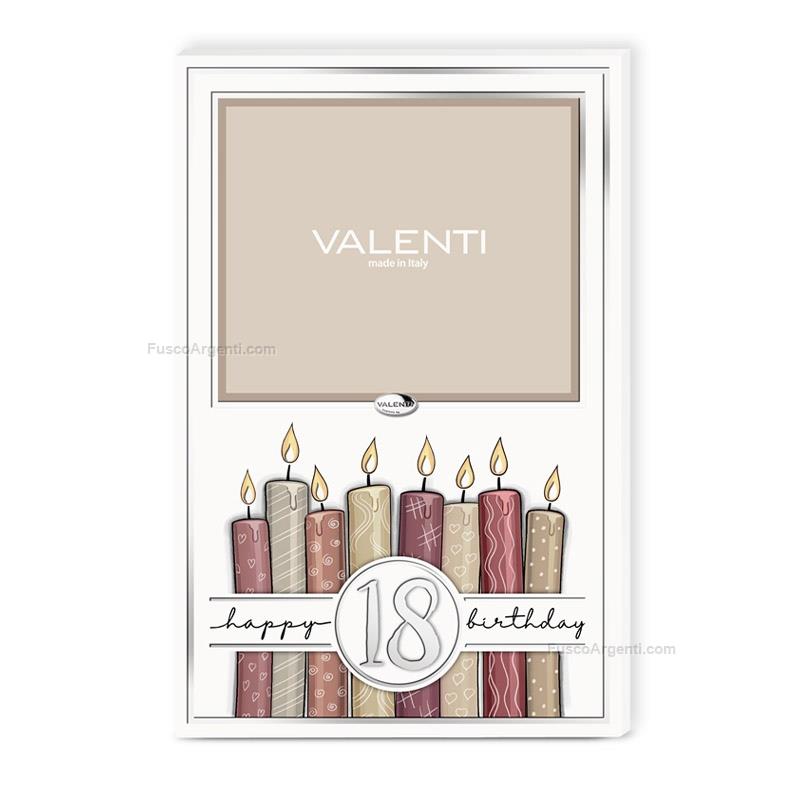 Cornice in legno e foglia argento "18° compleanno". Ricorrenze cornici cm 9,5x13 - int 7x5,5 Marca: Valenti & co. . Cod. prodotto: vlls1201/3