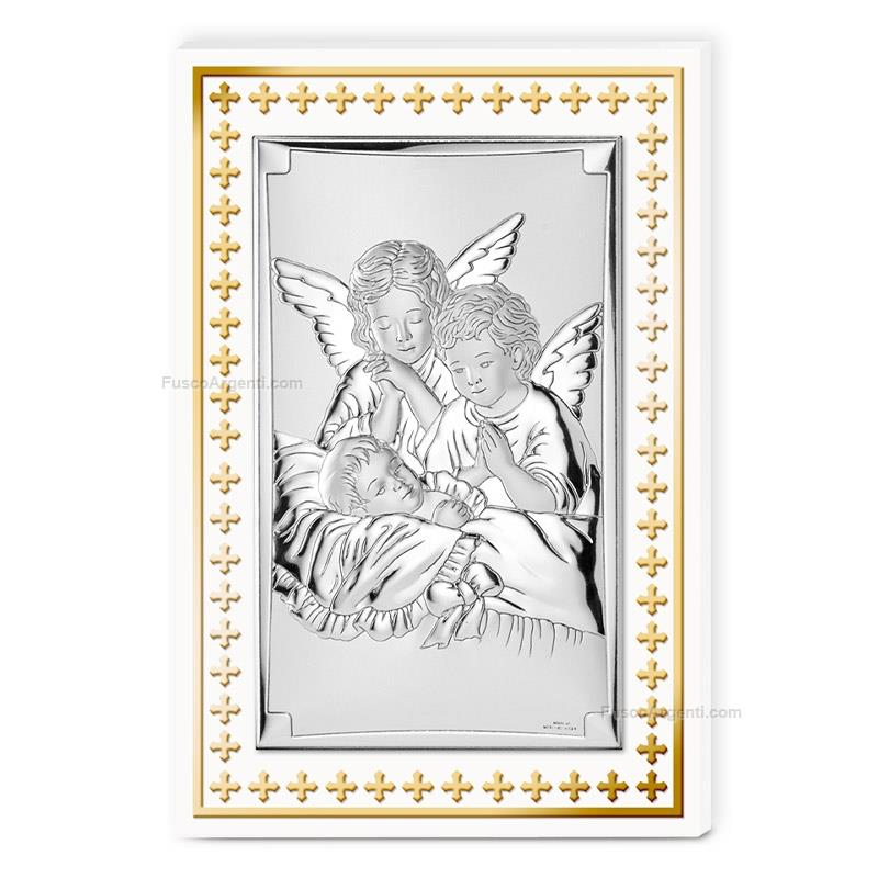 Pannello in legno e foglia oro "angeli custodi" con placca in argento laminato. Icone sacre bomboniere cm 9x13,5 Marca: Valenti & co. . Cod. prodotto: vl81506/3l