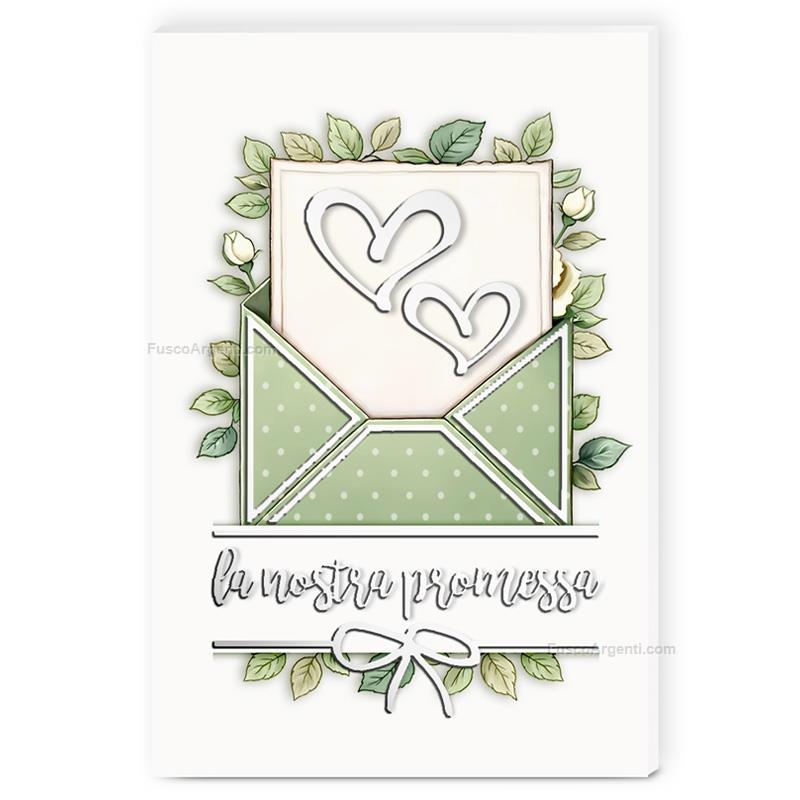 Pannello "la promessa" in legno e foglia argento. Ricorrenze bomboniere anniversario e matrimonio cm 6x9 Marca: Valenti & co. . Cod. prodotto: vlls1211/1